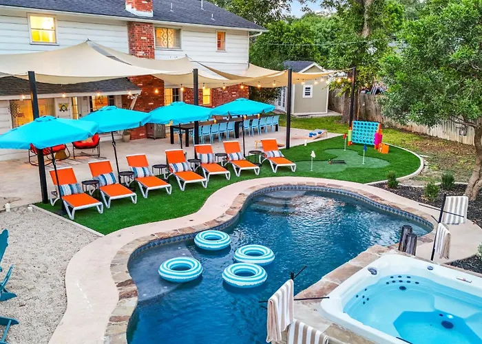 Resort Style Backyard Pool Putt Putt Hot Tub San Antonio